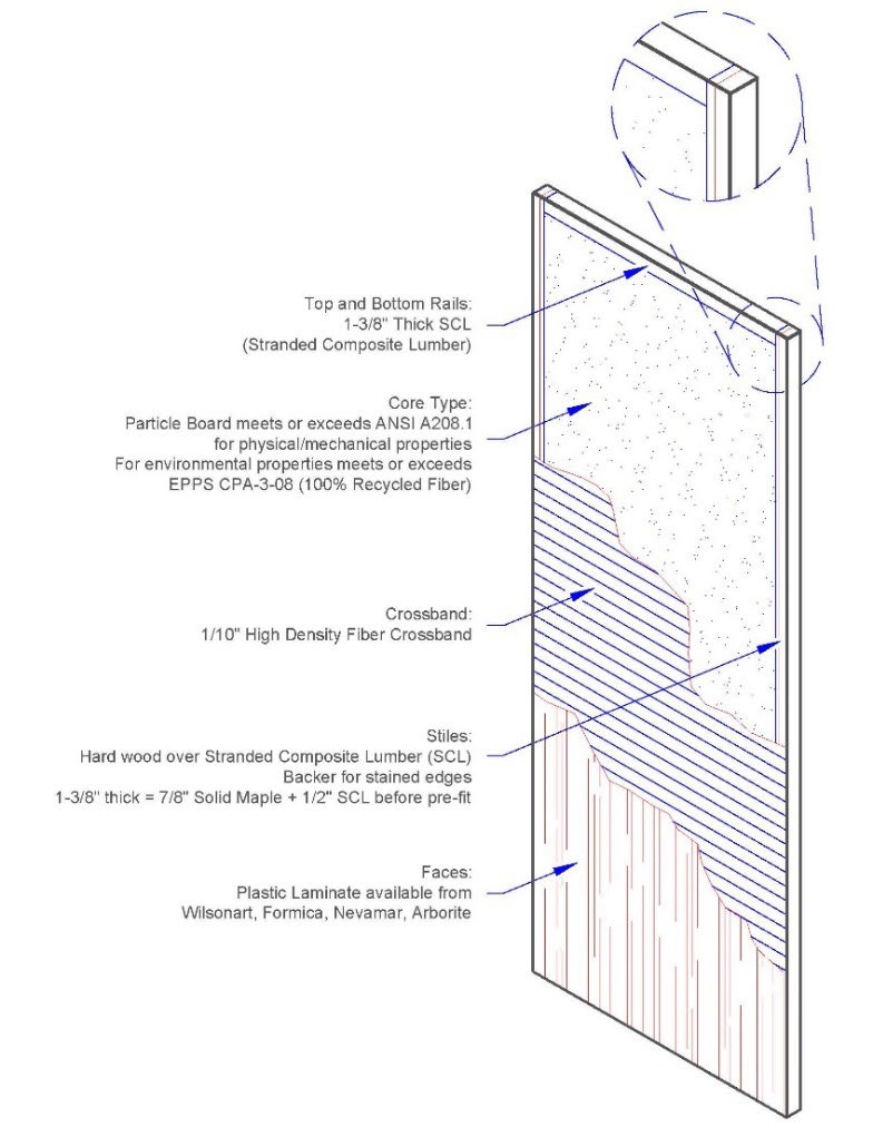 Architectural wood doors are engineered products and can be used in residential or commercial applications. These doors can withstand heavier hardware, but are more complicated to make. Our architectural wood doors are made with wood veneers. These veneers are made by thinly slicing lumber and pressing them onto a solid wood substrate or a core to make an engineered product.