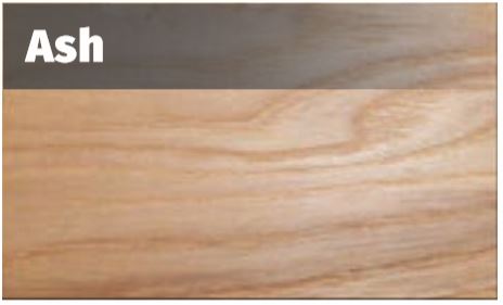 Ash is a moderately heavy hardwood with many of the same specs as red oak. It has excellent shock resistance and very good overall strength and dimensional stability. The sapwood is narrow and white in color. The heartwood is pale brown or pale yellow streaked with brown. The grain is bold, straight and moderately open with an occasional wavy pattern. Ash is coarsely textured and can be polished to a high luster. The wood has good straining characteristics and is often finished in black painting properties are satisfactory.