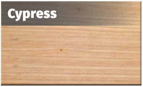 Cypress is a moderately heavy wood with medium bending strength and moderate crushing strength. It is hard, strong and moderately stiff. The sapwood is pale yellowish white and it merges gradually into the heartwood. The heartwood is varied in color with some wood featuring lighter streaks on a darker background. The color ranges from yellowish to light or dark brown almost black. The grain is straight but may be uneven. Texture is coarse and oil from the tree imparts a greasy feel to the wood. Cypress takes paint extremely well.